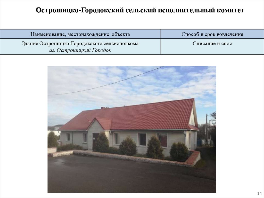 Острошицко-Городокский сельский исполнительный комитетНаименование, местонахождение объекта