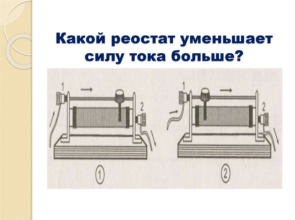 14. Какой реостат уменьшает силу тока больше?