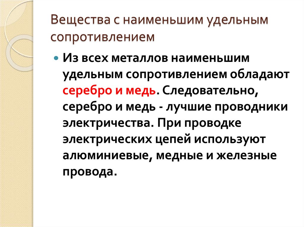 3. Вещества с наименьшим удельным сопротивлением
