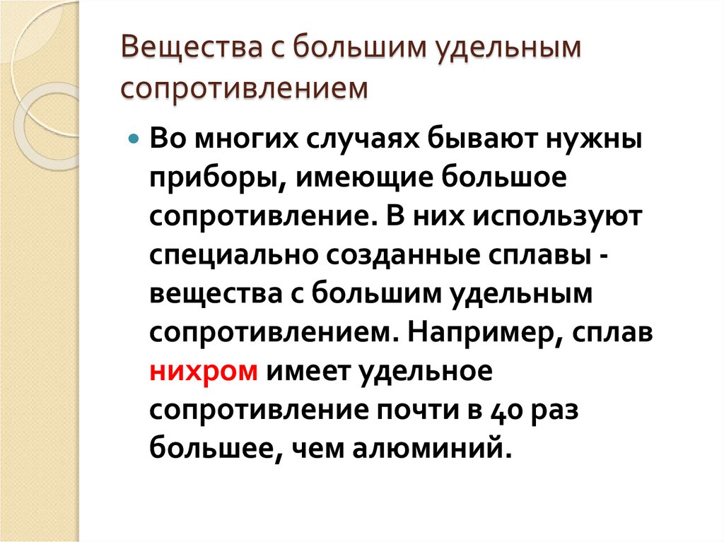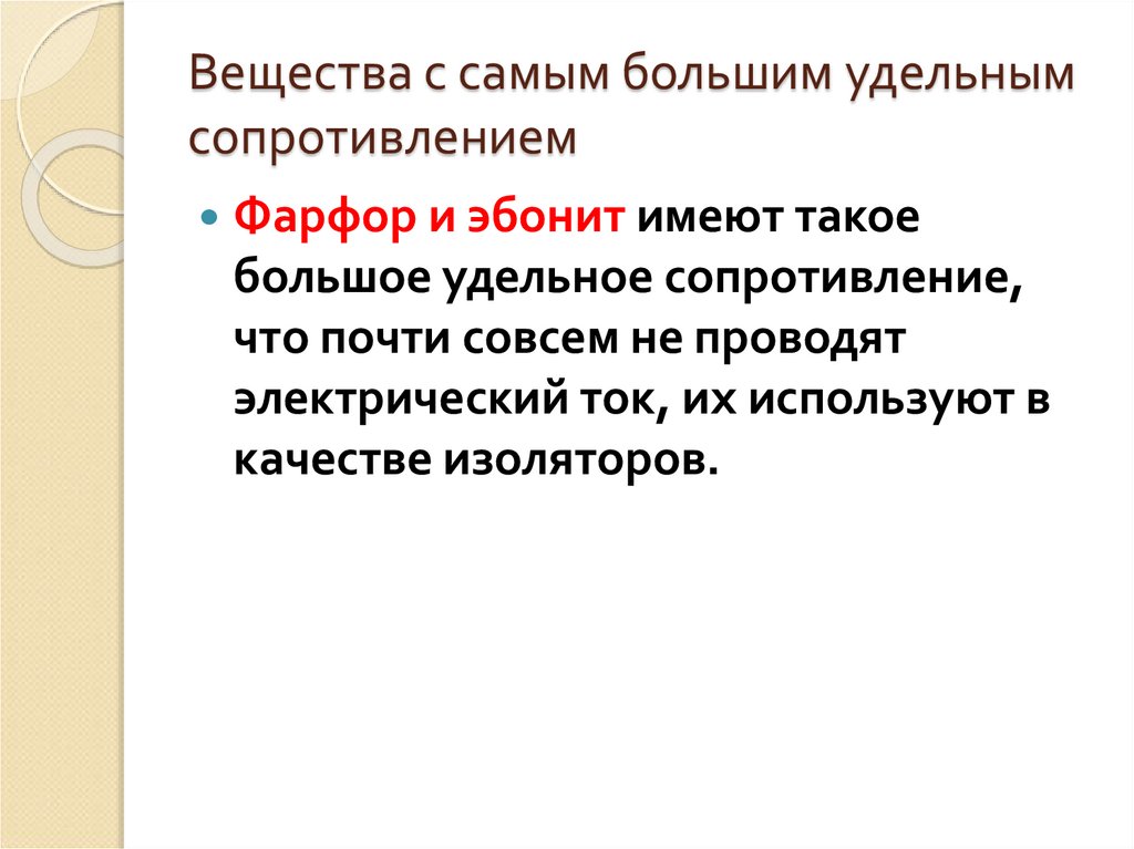 4. Вещества с большим удельным сопротивлением