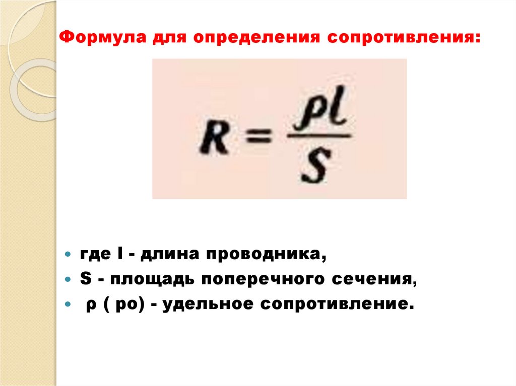 7. Формула для определения сопротивления:
