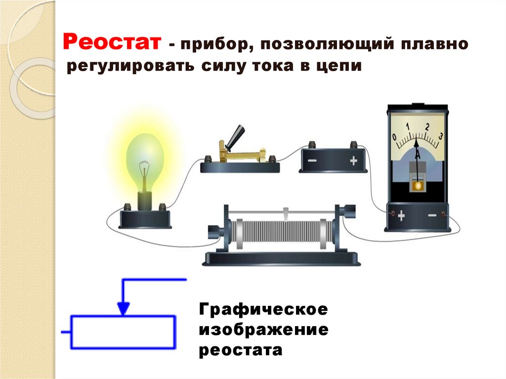 Реостат - прибор, позволяющий плавнорегулировать силу тока в цепи