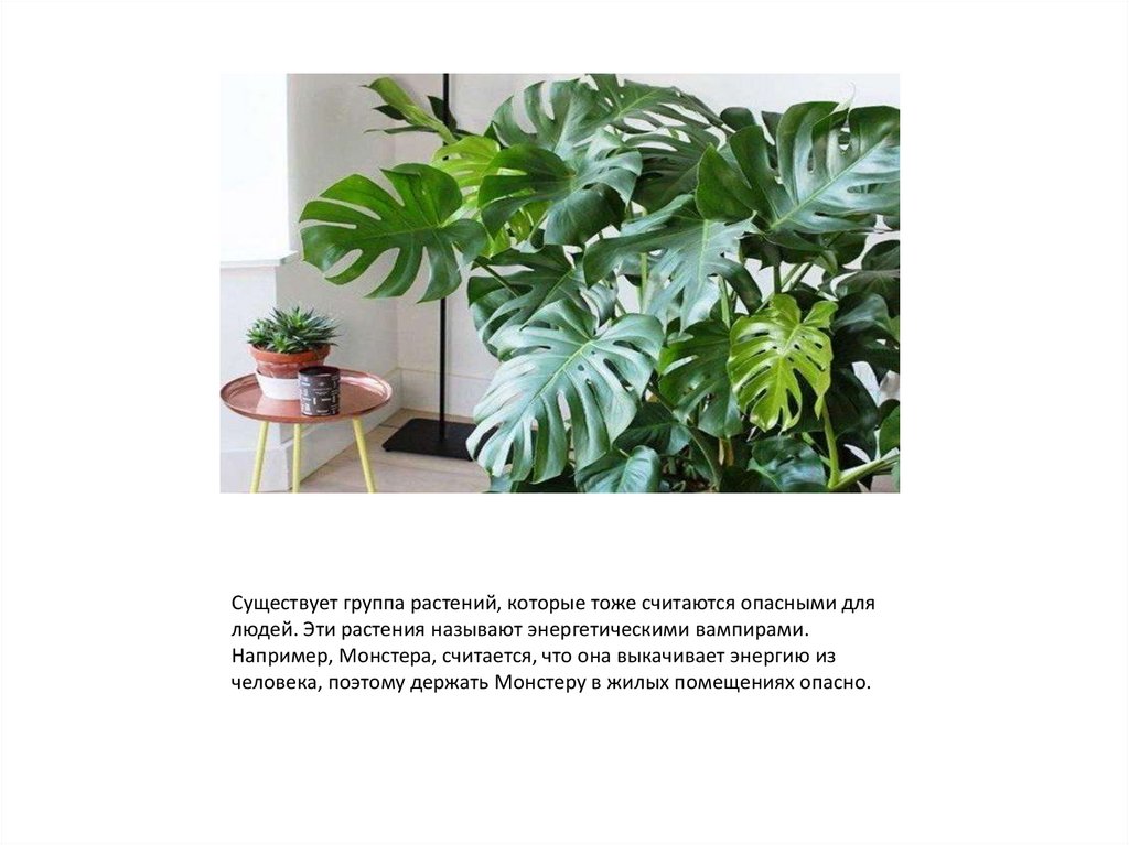 человека, поэтому держать Монстеру в жилых помещениях опасно.