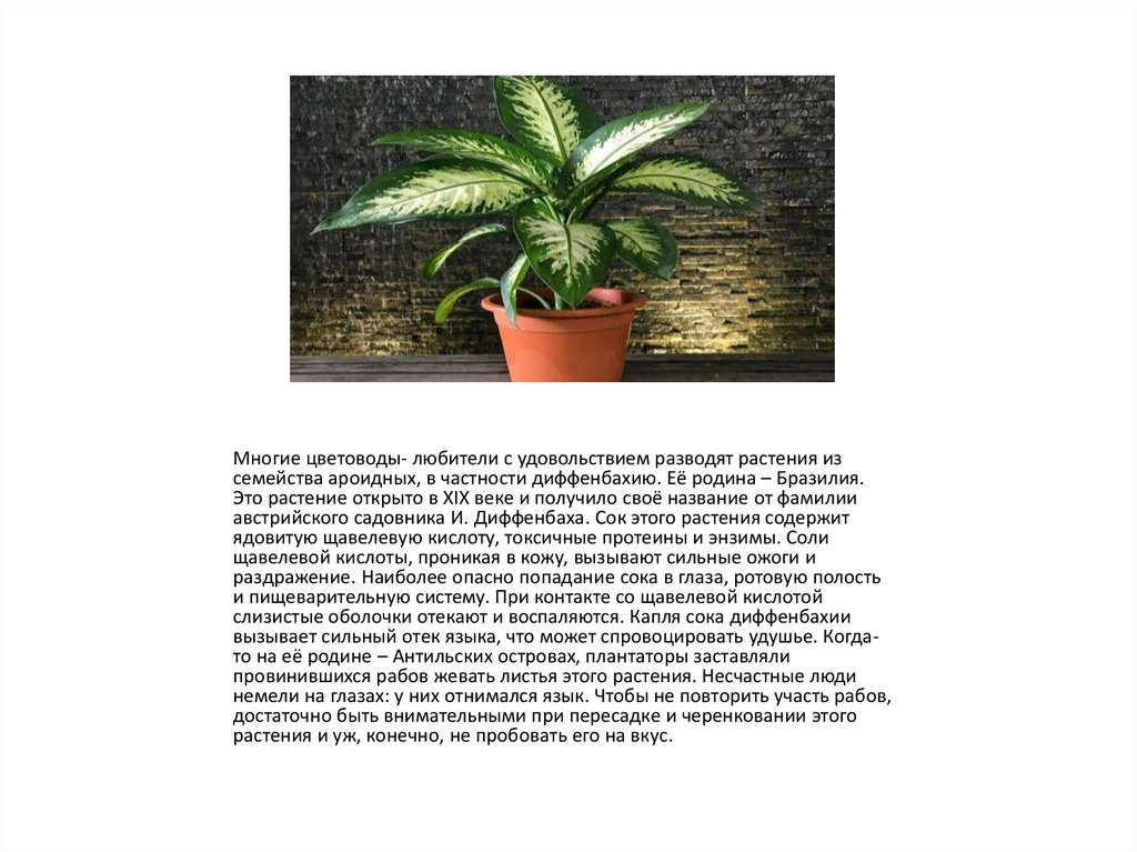 австрийского садовника И. Диффенбаха. Сок этого растения содержит