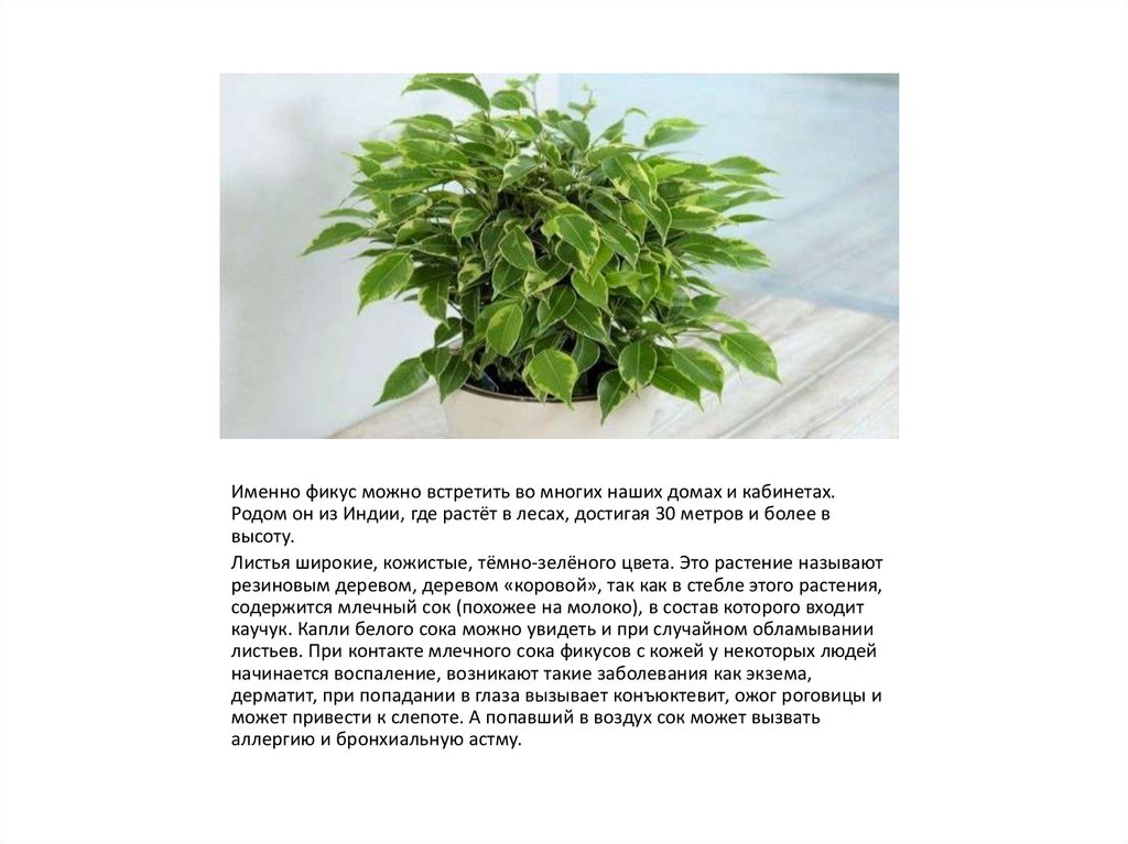 листьев. При контакте млечного сока фикусов с кожей у некоторых людей