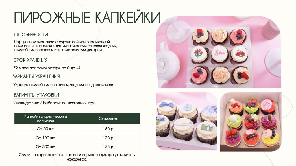 Скидки на корпоративные заказы и варианты декора уточняйте у