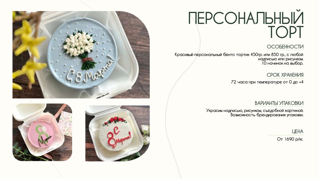Красивый персональный бенто тортик 450гр. или 850 гр., с любой