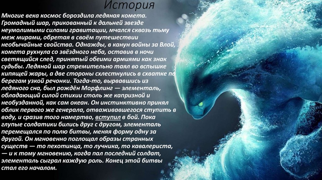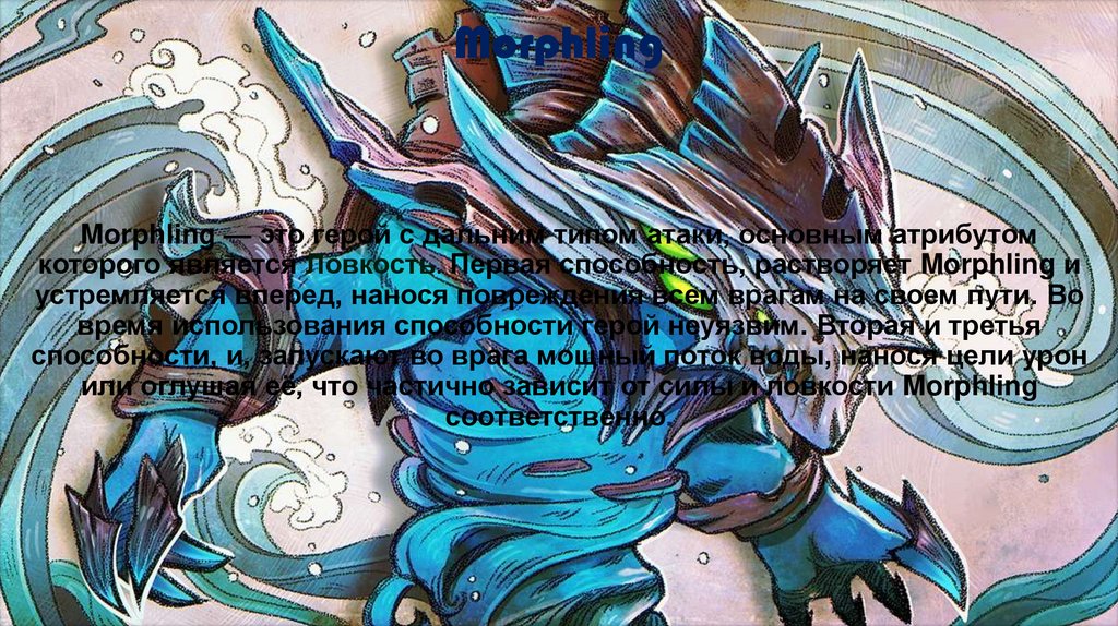 MorphlingMorphling — это герой с дальним типом атаки, основным атрибутом