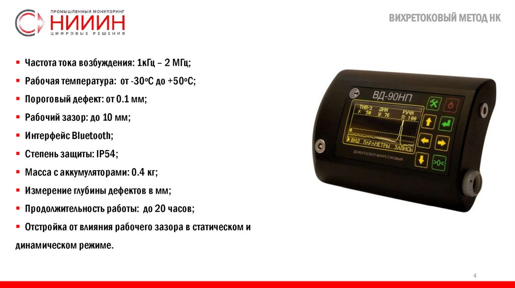 ВИХРЕТОКОВЫЙ МЕТОД НКЧастота тока возбуждения: 1кГц – 2 МГц;