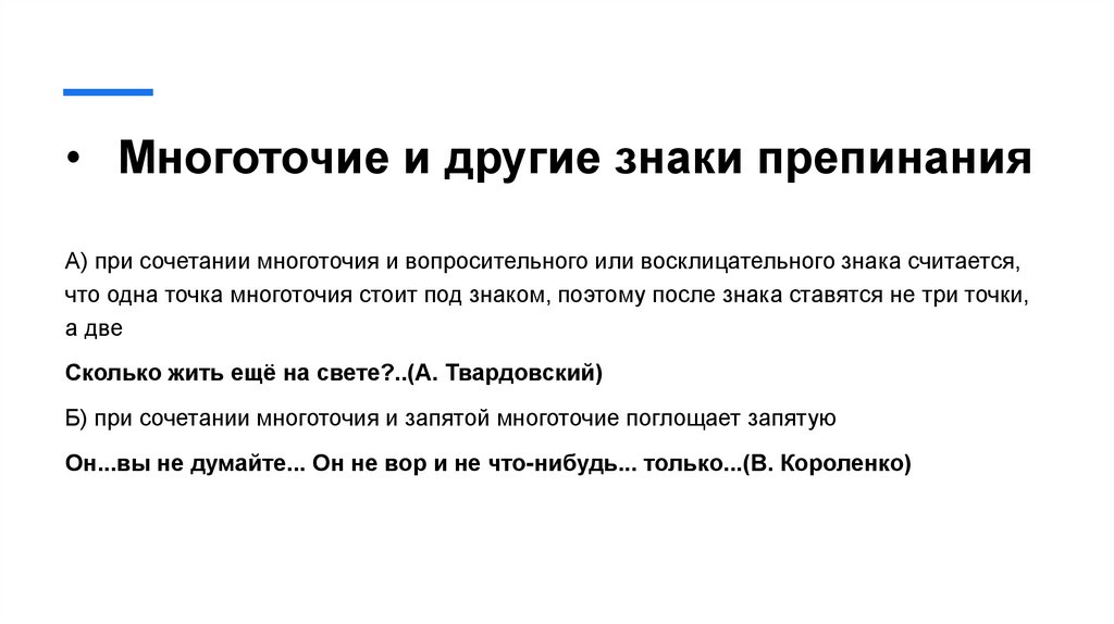 • Многоточие и другие знаки препинанияА) при сочетании многоточия и вопросительного или восклицательного знака считается,