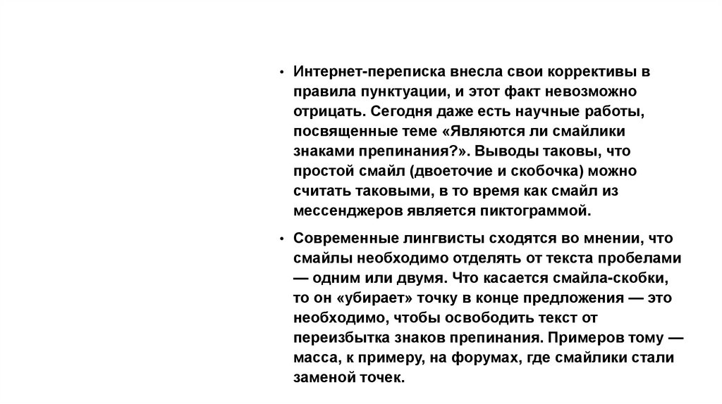 • Интернет-переписка внесла свои коррективы вправила пунктуации, и этот факт невозможно