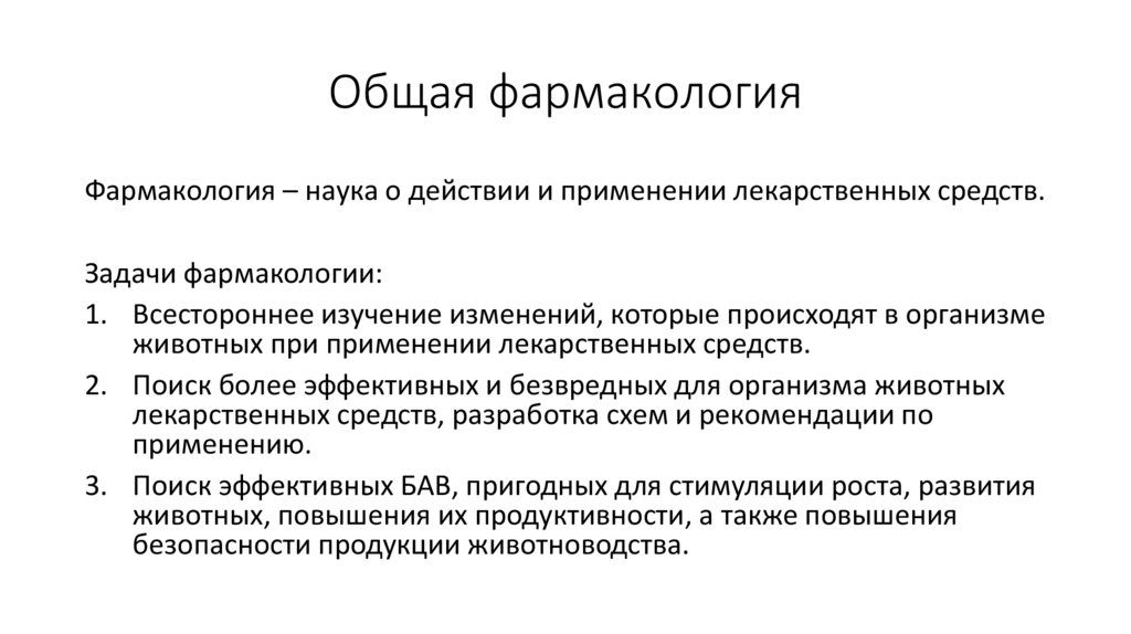 Задачи фармакологии: