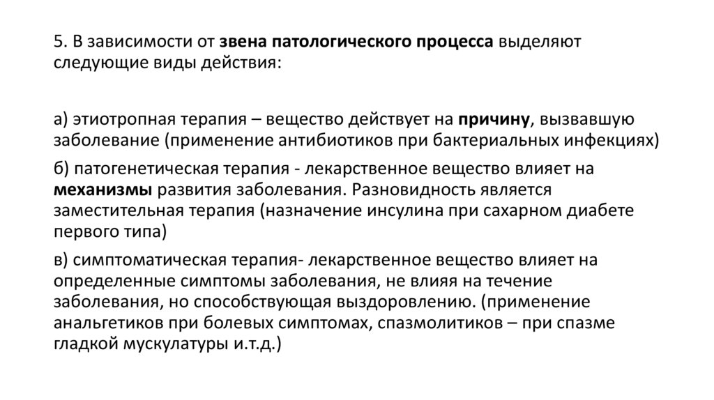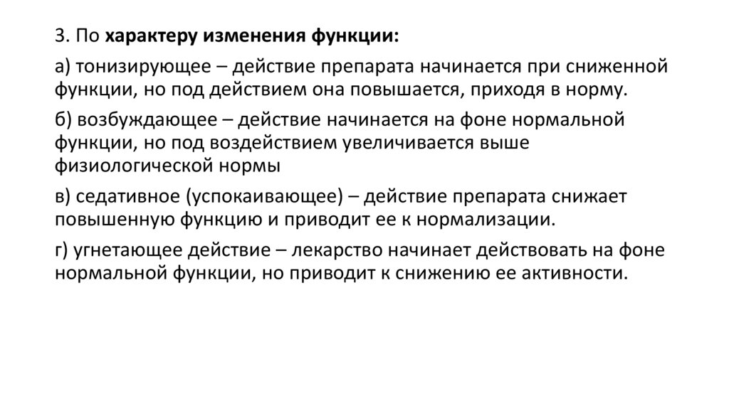• Фармакодинамическими (влияние на механизм развития