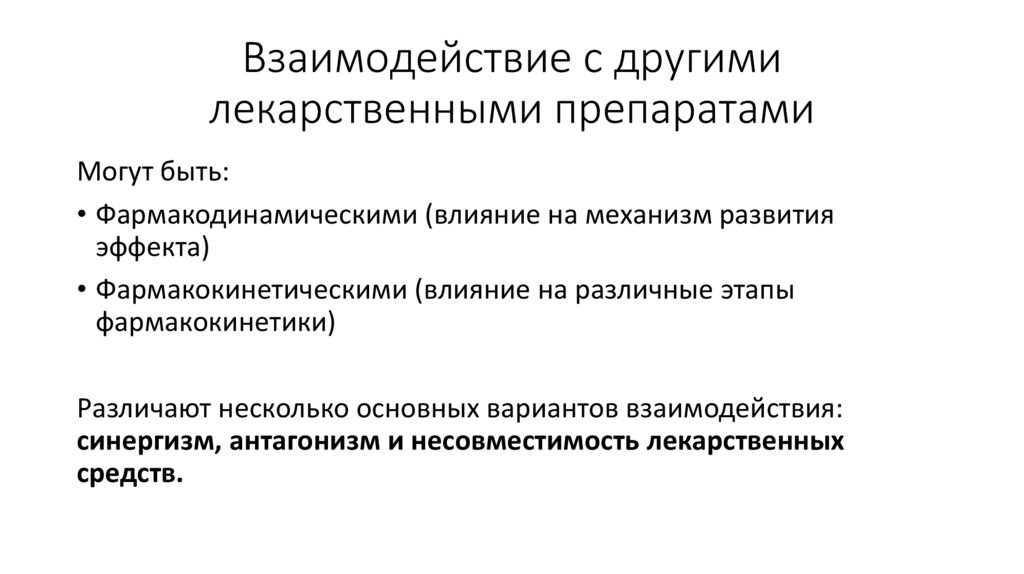 синергизм, антагонизм и несовместимость лекарственных