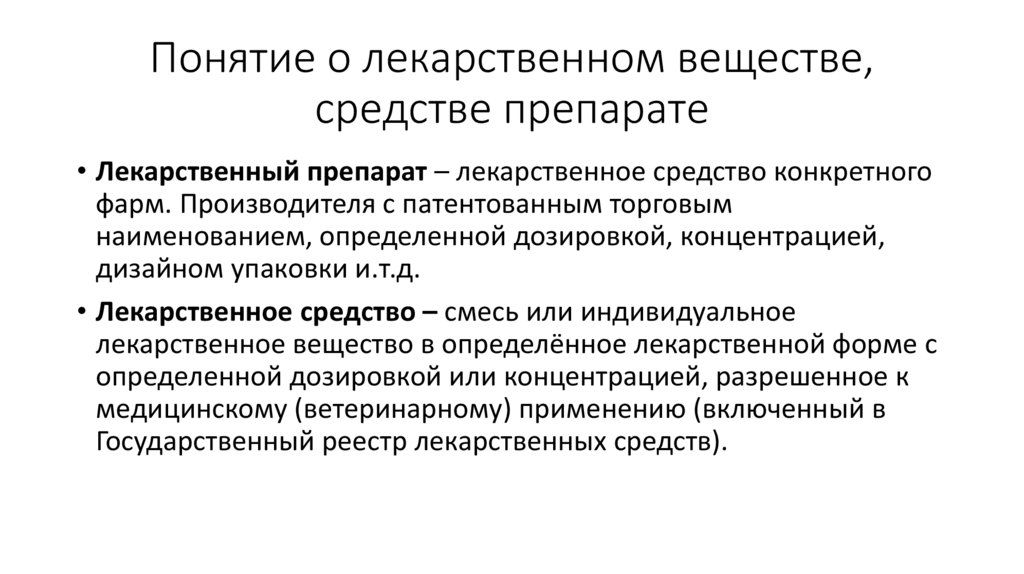 • Лекарственный препарат – лекарственное средство конкретного