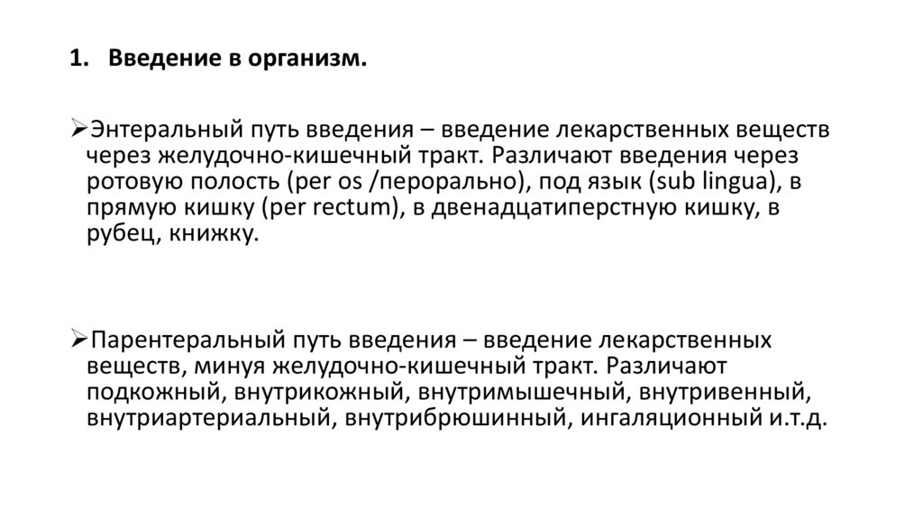 1. Введение в организм.Энтеральный путь введения – введение лекарственных веществ