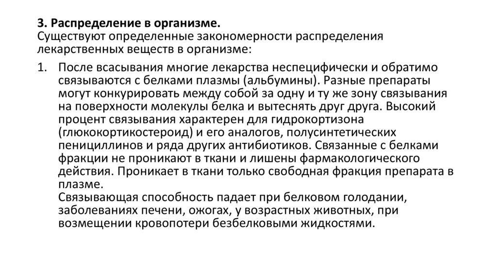 3. Распределение в организме.Существуют определенные закономерности распределения