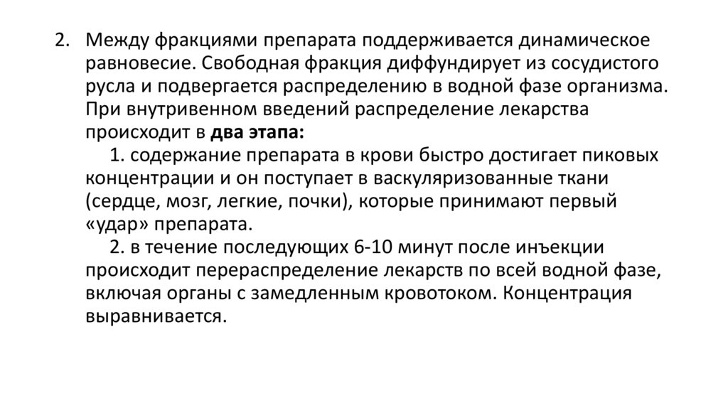 2. Между фракциями препарата поддерживается динамическоеравновесие. Свободная фракция диффундирует из сосудистого
