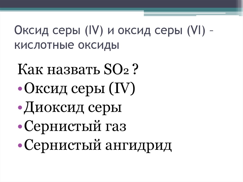 Оксид серы (IV) и оксид серы (VI) –кислотные оксиды