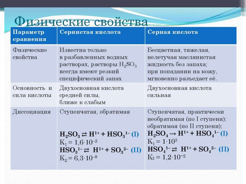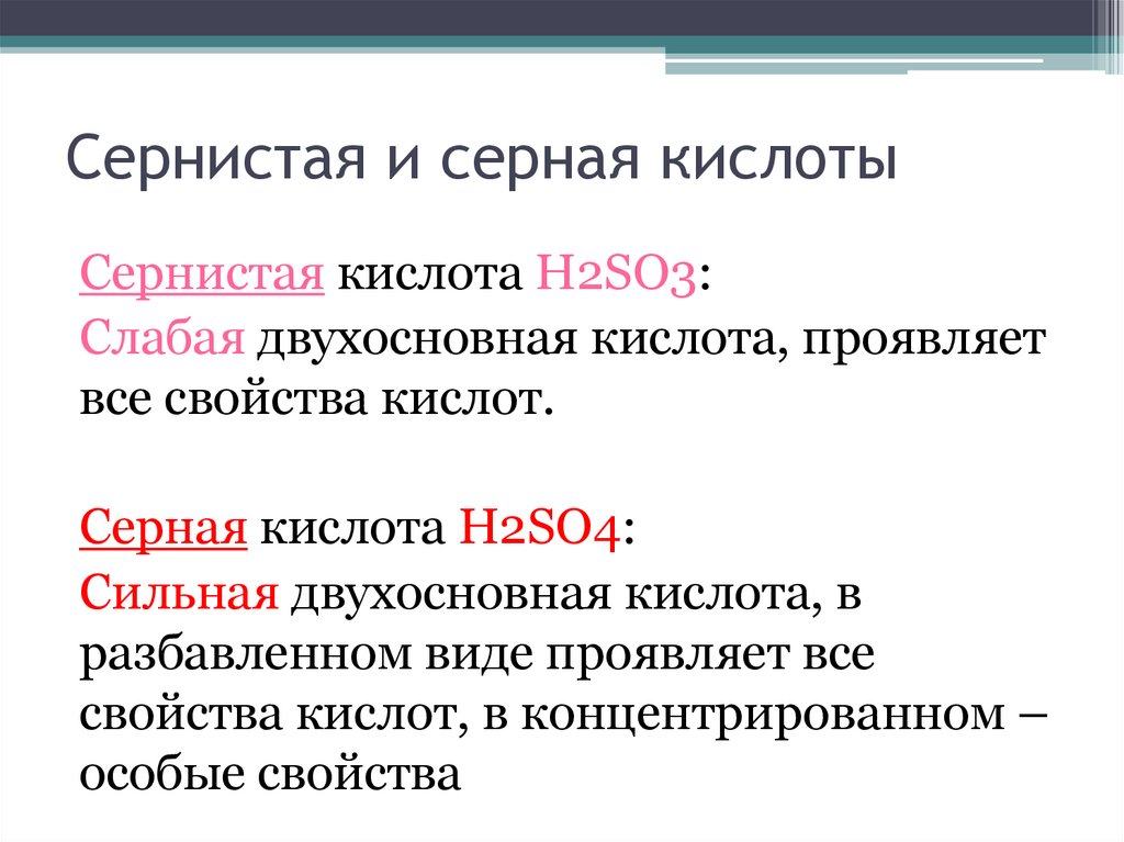 Сернистая и серная кислотыСернистая кислота H2SO3: