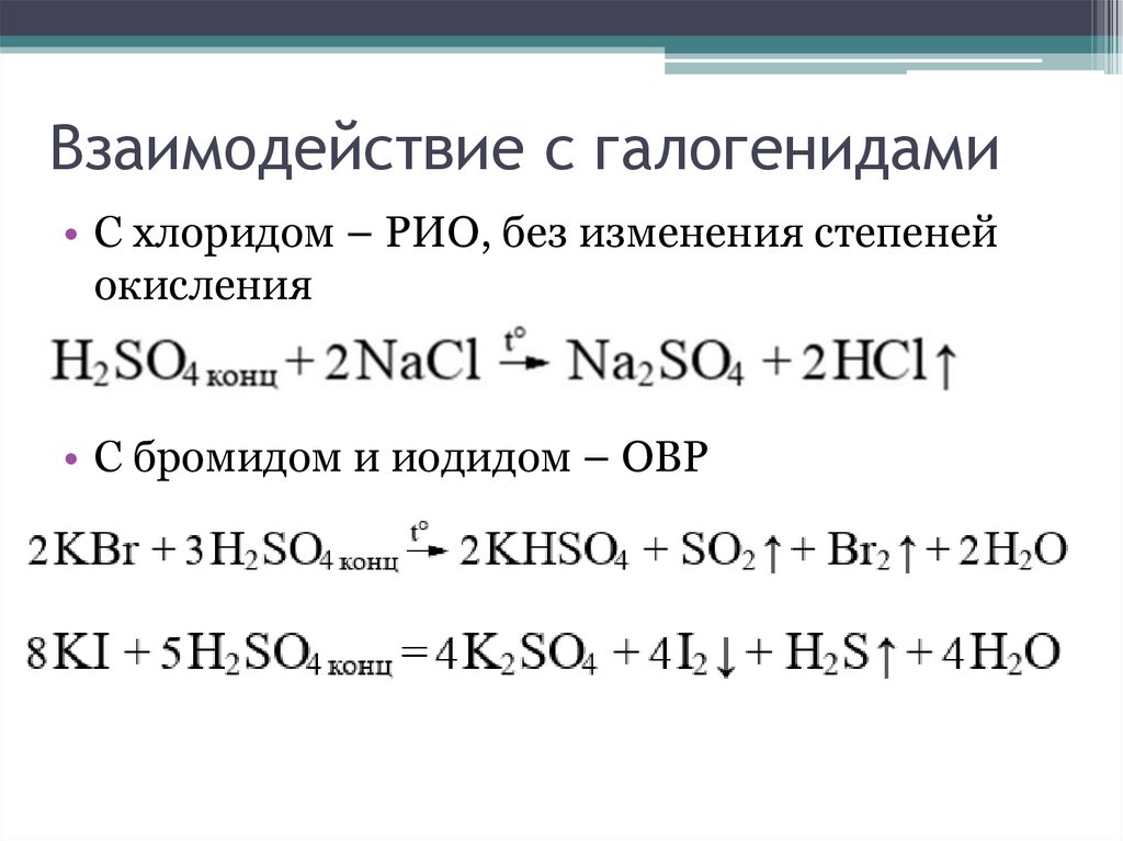 Взаимодействие с галогенидами• С хлоридом – РИО, без изменения степеней