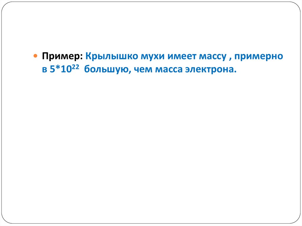 Пример: Крылышко мухи имеет массу , примернов 5*1022 большую, чем масса электрона.