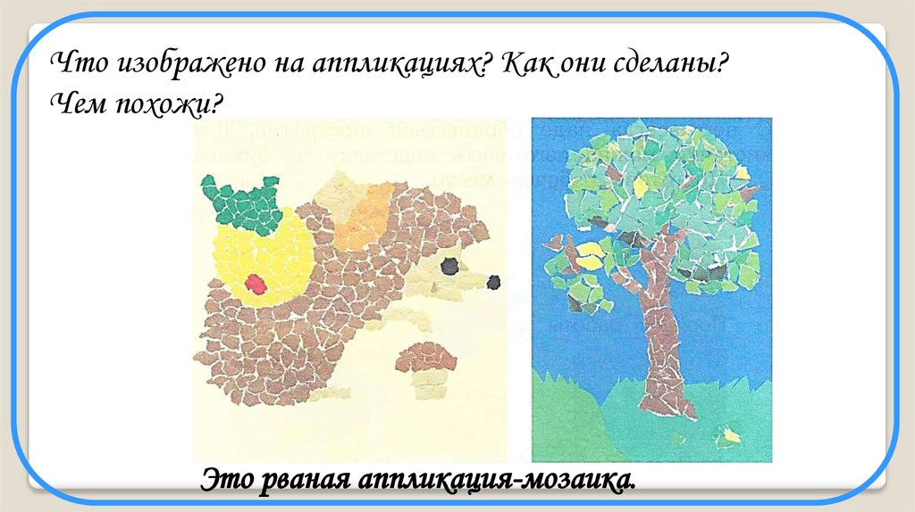 Что изображено на аппликациях? Как они сделаны?Чем похожи?