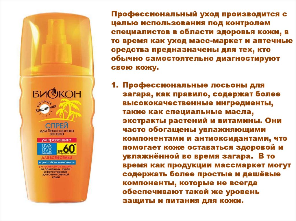 Чем профессиональные лосьоны длязагара отличаются от массмаркет. Бренды