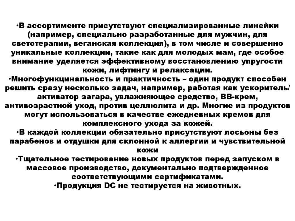 •Продукция DC не тестируется на животных.