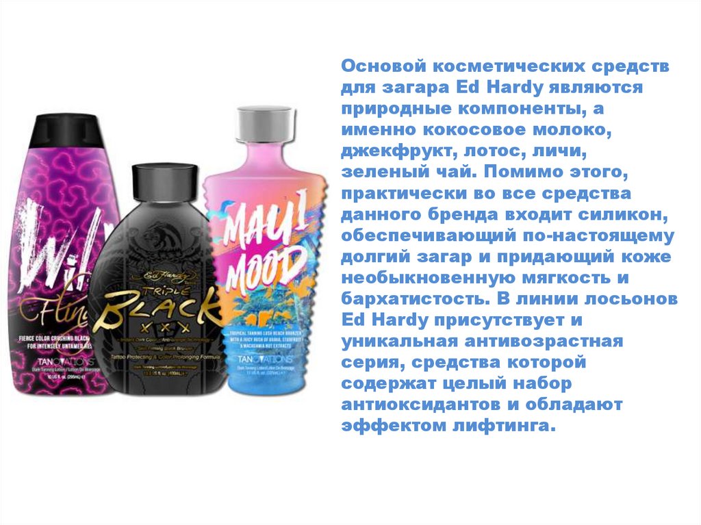 Основой косметических средствдля загара Ed Hardy являются