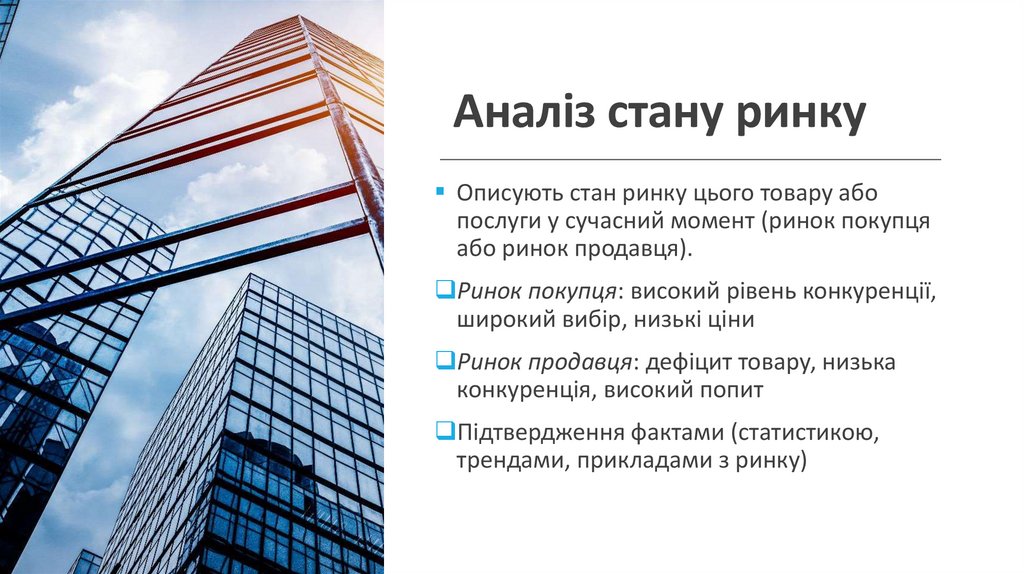 Аналіз стану ринкуОписують стан ринку цього товару або