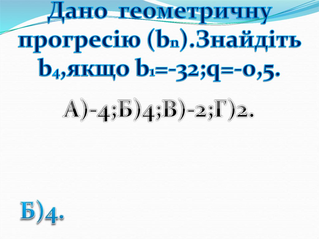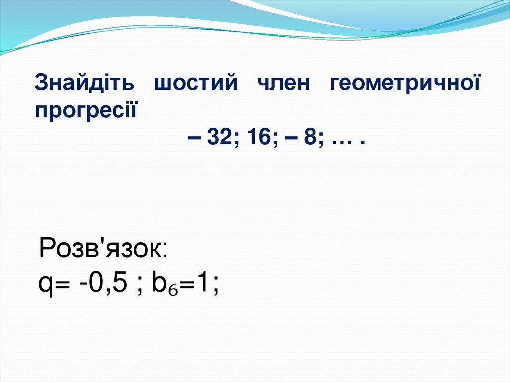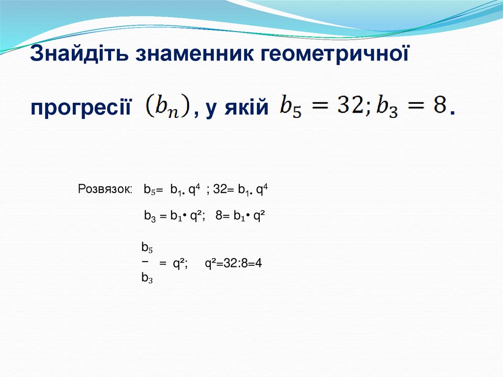 Розвязок: b₅= b1• q4 ; 32= b1• q4