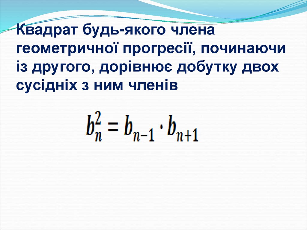 Квадрат будь-якого членагеометричної прогресії, починаючи