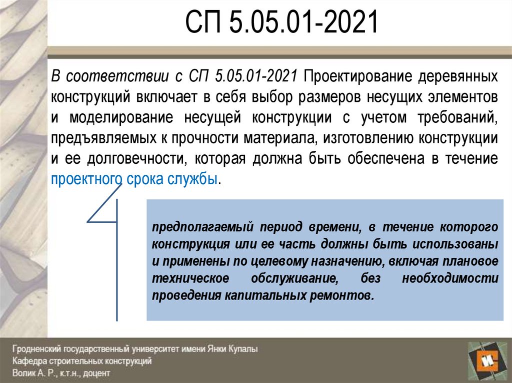 В соответствии с СП 5.05.01-2021 Проектирование деревянныхконструкций включает в себя выбор размеров несущих элементов