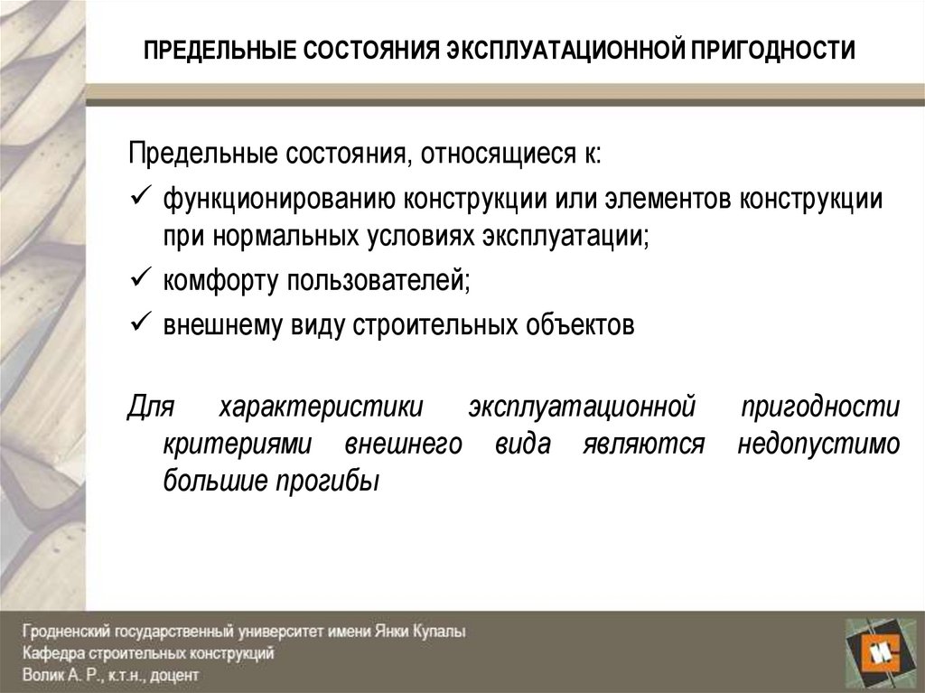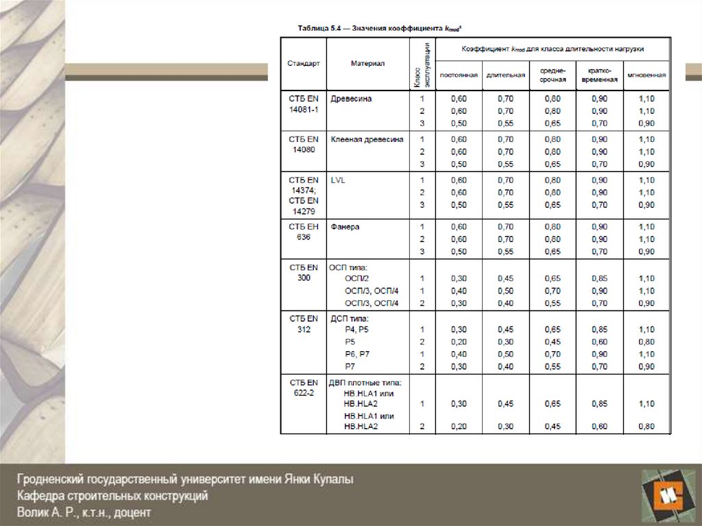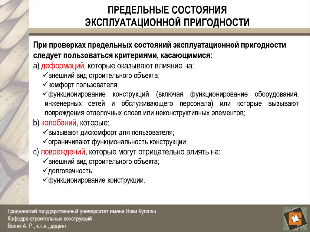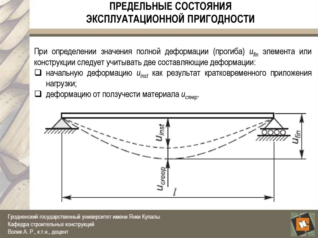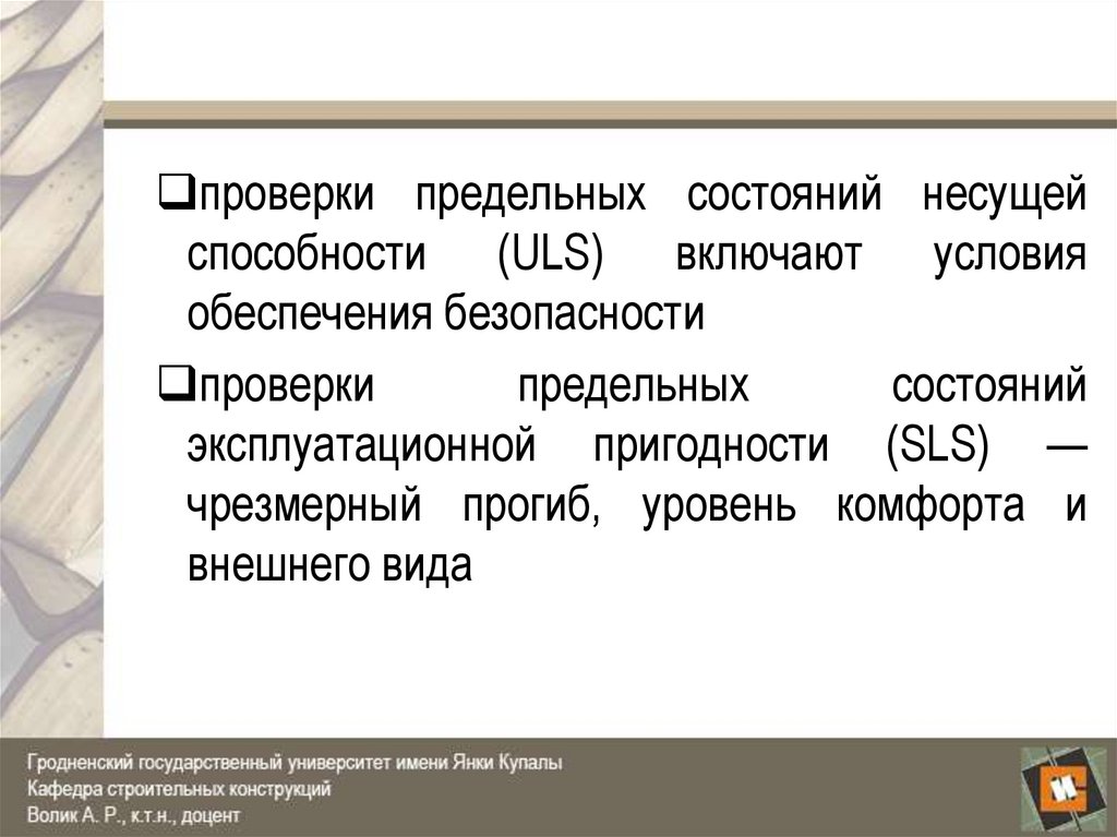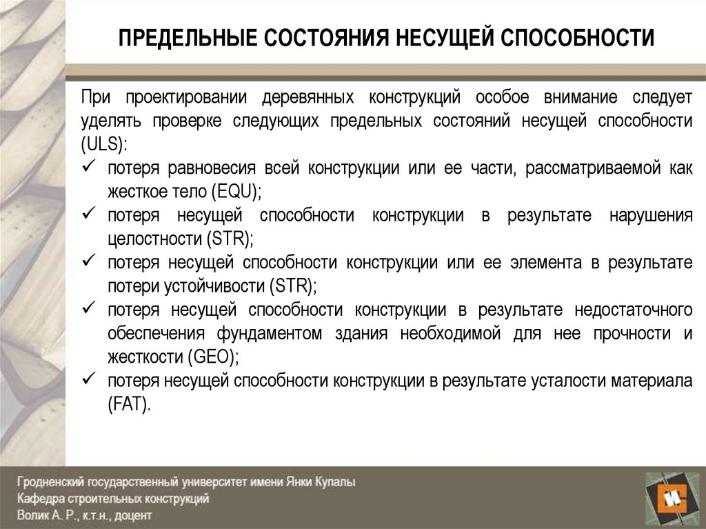 При проектировании деревянных конструкций особое внимание следуетуделять проверке следующих предельных состояний несущей способности