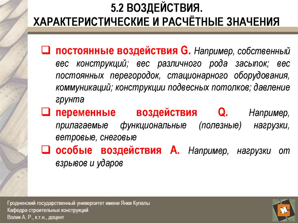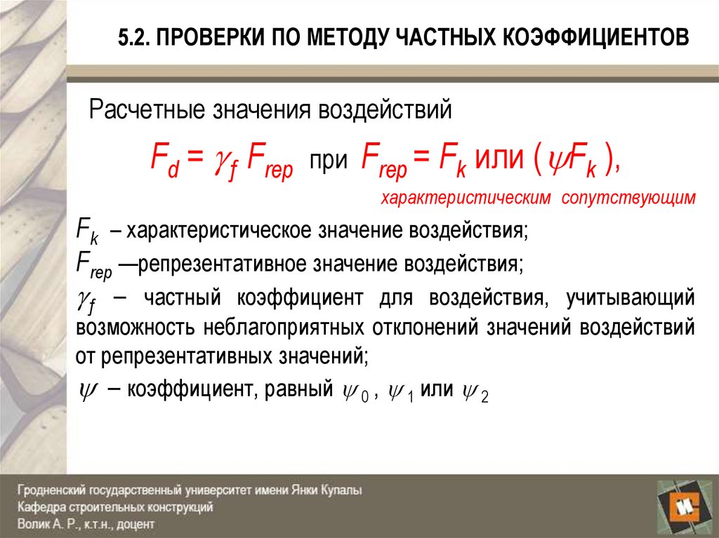 5.1 Основные принципы расчётов5.2 Воздействия. Характеристические и расчётные значения