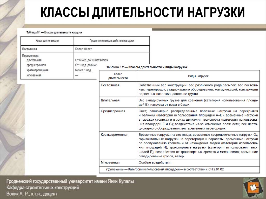 продолжительности действия нагрузки и условий эксплуатации; принимают по