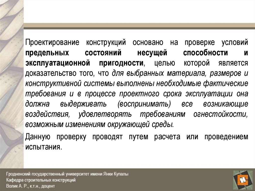 1. ЛЕКЦИЯ 5. ОСНОВНЫЕ ПРИНЦИПЫ РАСЧЕТОВ ПРЕДЕЛЬНЫХ СОСТОЯНИЙ