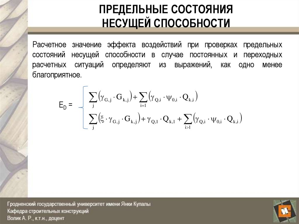 Ed≤Rdгде E d — расчетное значение эффекта воздействий (таких как