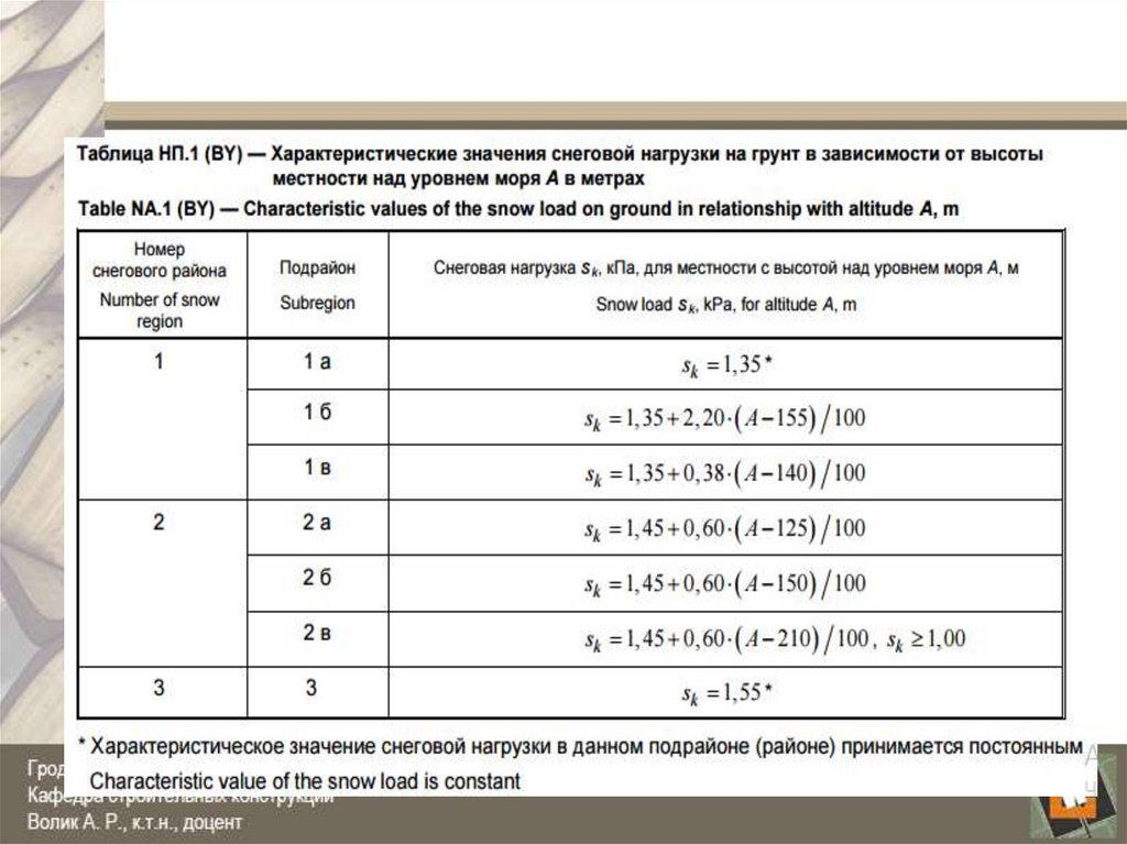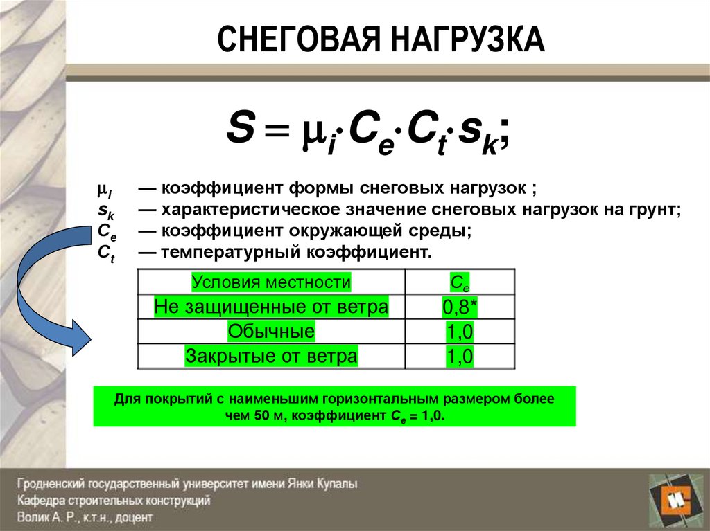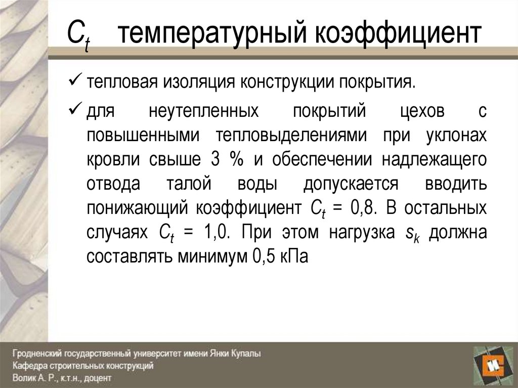 случаях Ct = 1,0. При этом нагрузка sk должна