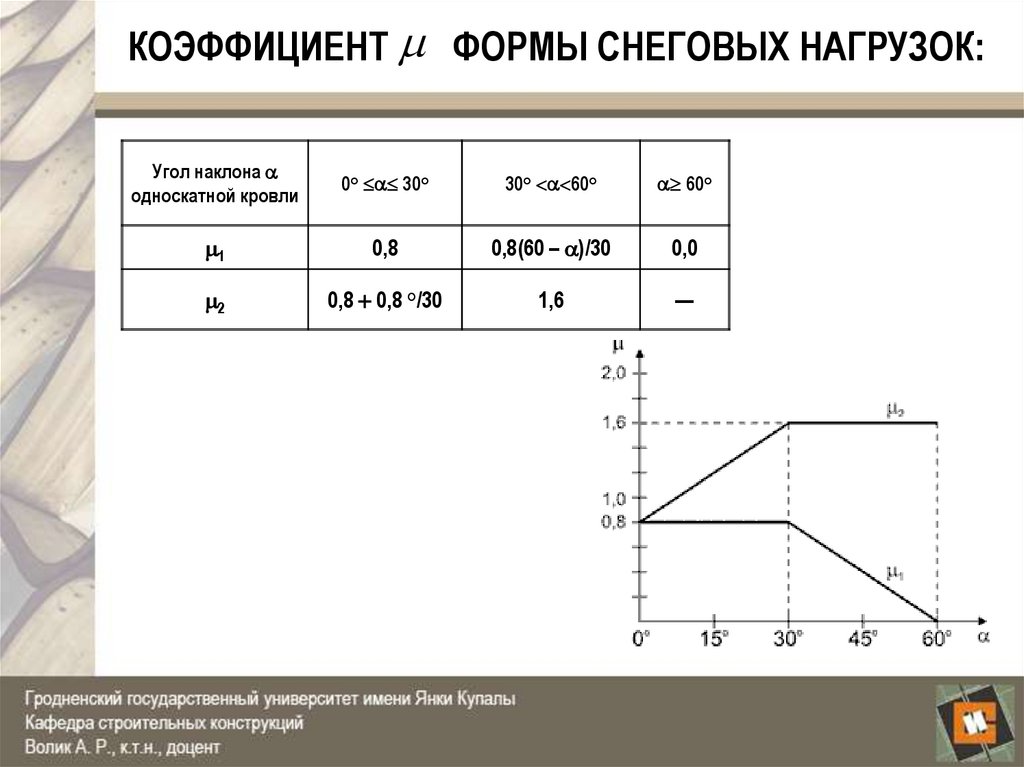 29. КОЭФФИЦИЕНТ ФОРМЫ СНЕГОВЫХ НАГРУЗОК: