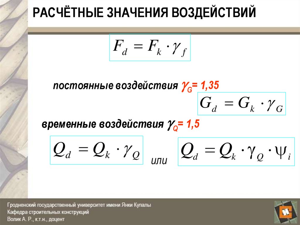 РАСЧЁТНЫЕ ЗНАЧЕНИЯ ВОЗДЕЙСТВИЙFd Fk f