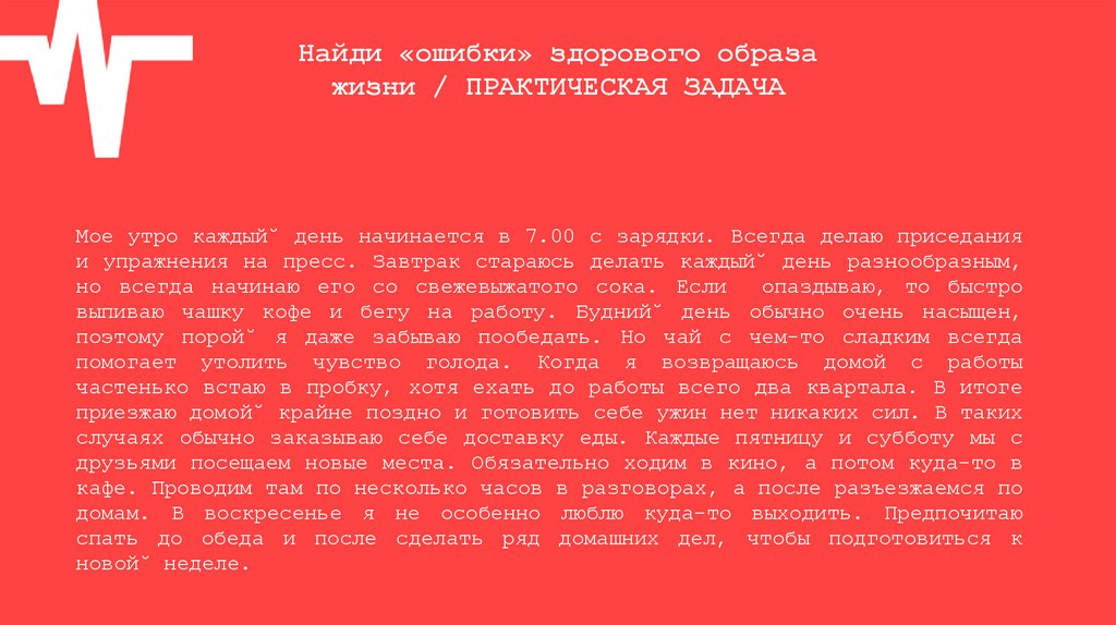 Найди «ошибки» здорового образажизни / ПРАКТИЧЕСКАЯ ЗАДАЧА