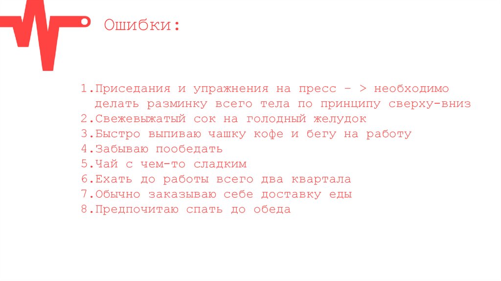 Ошибки:1.Приседания и упражнения на пресс – > необходимо