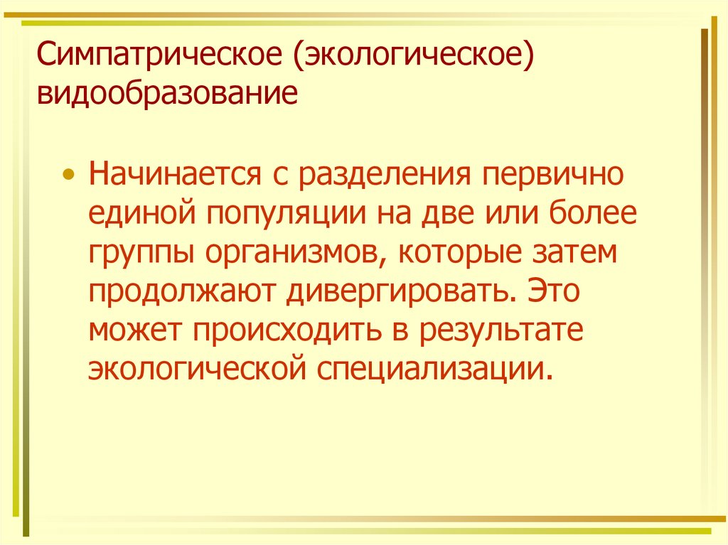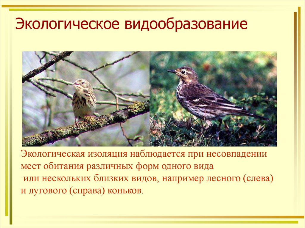 Экологическое видообразованиеЭкологическая изоляция наблюдается при несовпадении