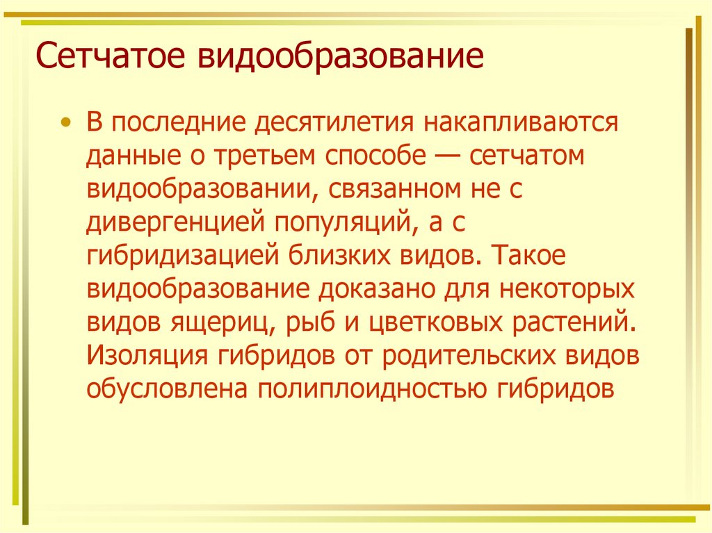 Сетчатое видообразование• В последние десятилетия накапливаются