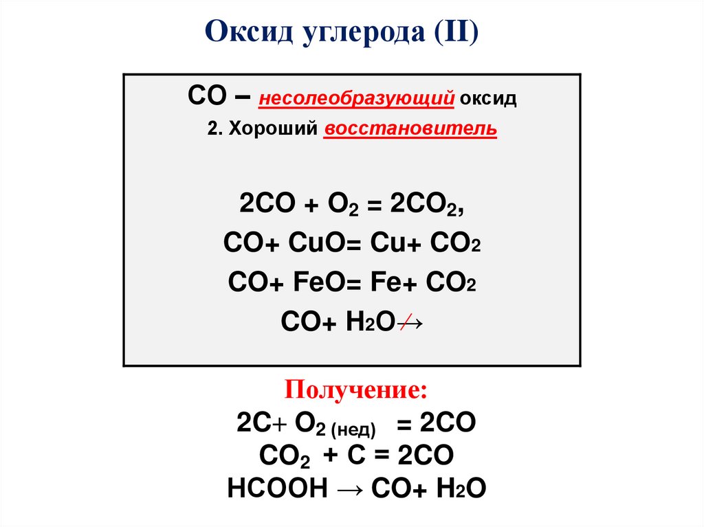 СО – несолеобразующий оксид2. Хороший восстановитель