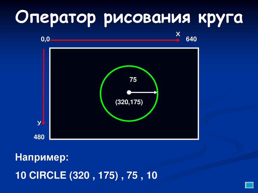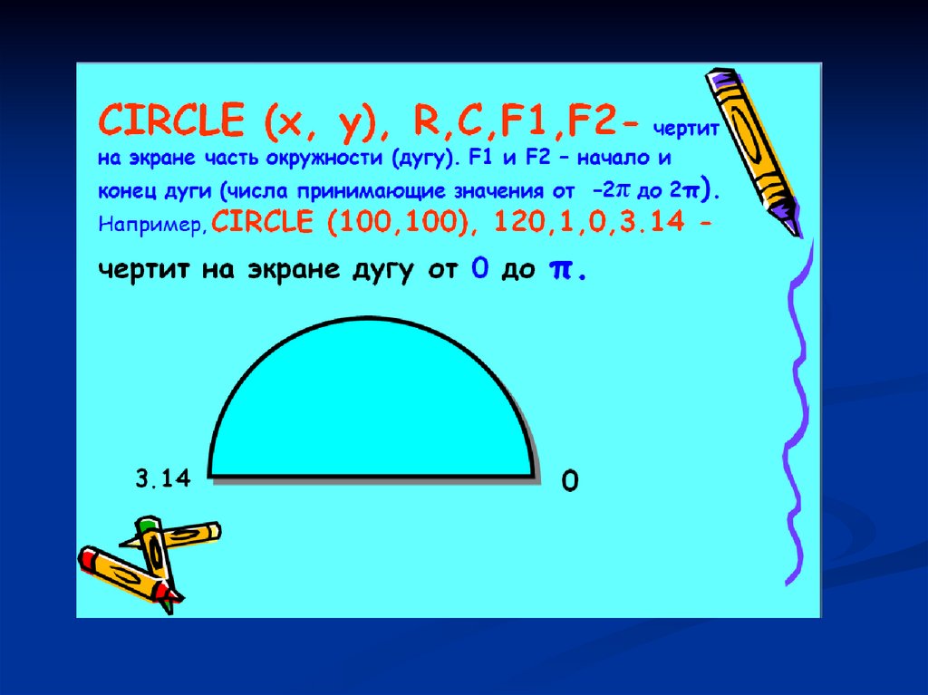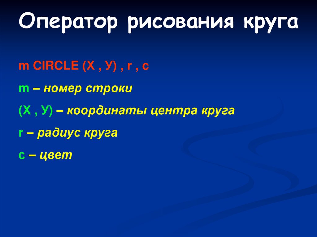 Оператор рисования кругаm CIRCLE (Х , У) , r , c