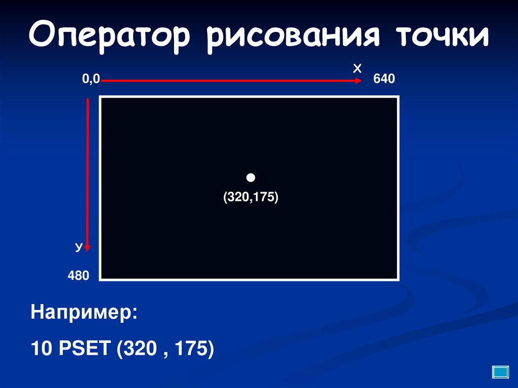 вправо от которого увеличивается координата Х, а вниз координата У.