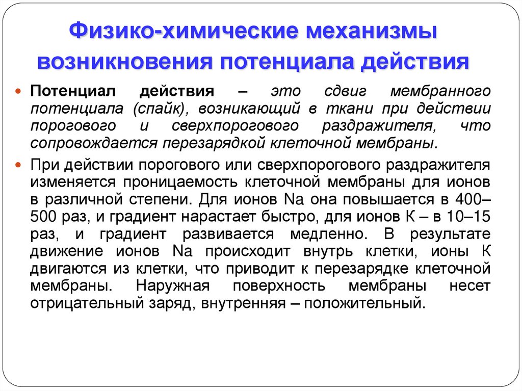 500 раз, и градиент нарастает быстро, для ионов К – в 10–15